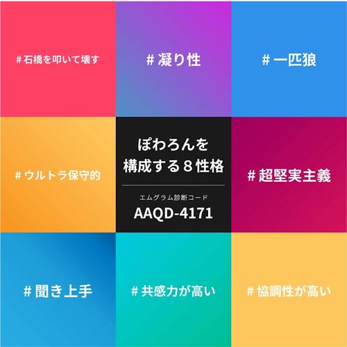 こんにちは、ぽわろんです。 こちらの花水由来さんのブログで紹介されていた、エムグラムの性格診断。 おもしろそう(*'▽'*)!自己紹介にもなるのかあ。 と、さっそくやってみました。 花水由来さん、ありがとうございます! よく、会社の採用試験なんかでや…